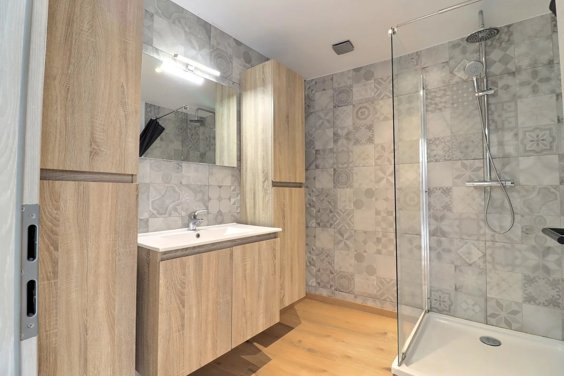 1er étage: un hall de nuit avec espace buanderie, un WC séparé, une salle de bain ainsi que deux chambres lumineuses.