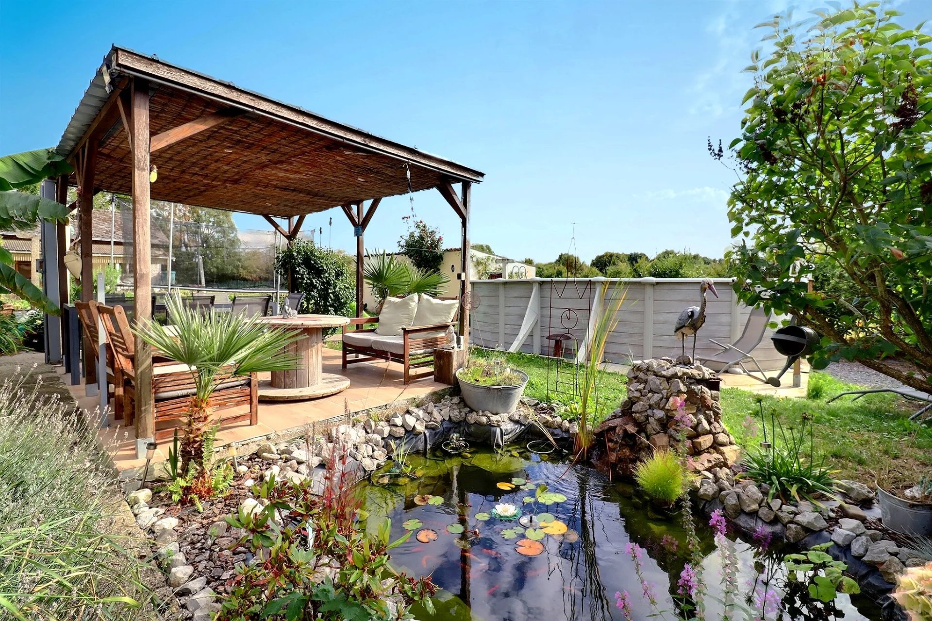Beau terrain idéalement orienté avec terrasse, point d’eau et piscine